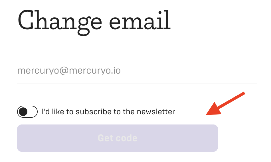 - Enter the email address that you would like to use for your Mercuryo Wallet in the next step, select if you would like to subscribe to the Mercuryo Newsletter, and then press 'Get code'.